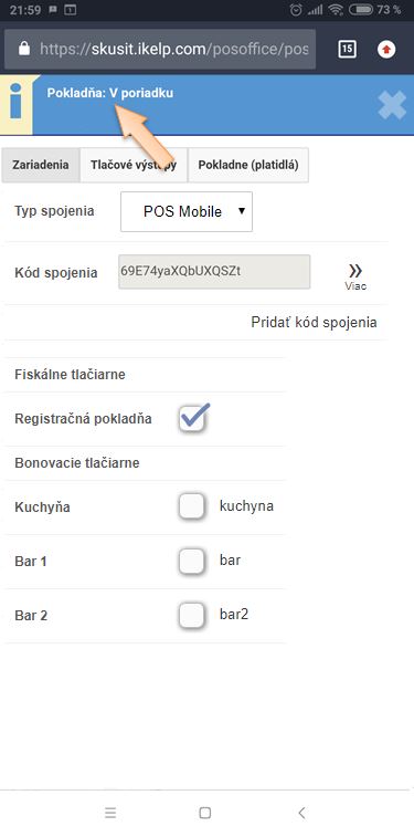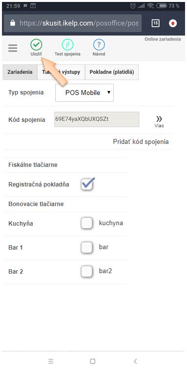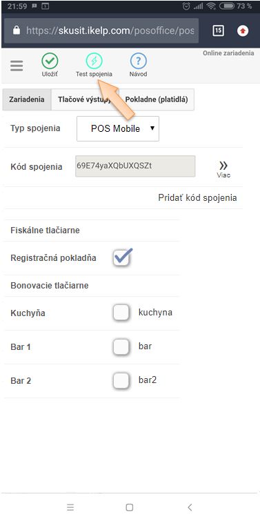 Test komunikácie vykonáte cez Predajnú aplikáciu iKelp POS Mobile.