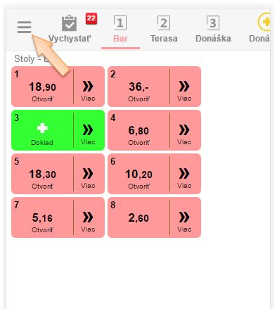 - Autorizáciu zariadenia vykonáte po prihlásení kliknutím na ikonu Menu aplikácie.
