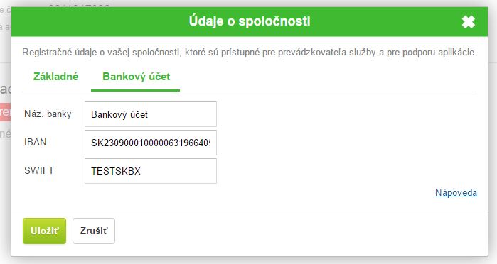 Názov banky - názov banky v ktorej máte vytvorený účet.