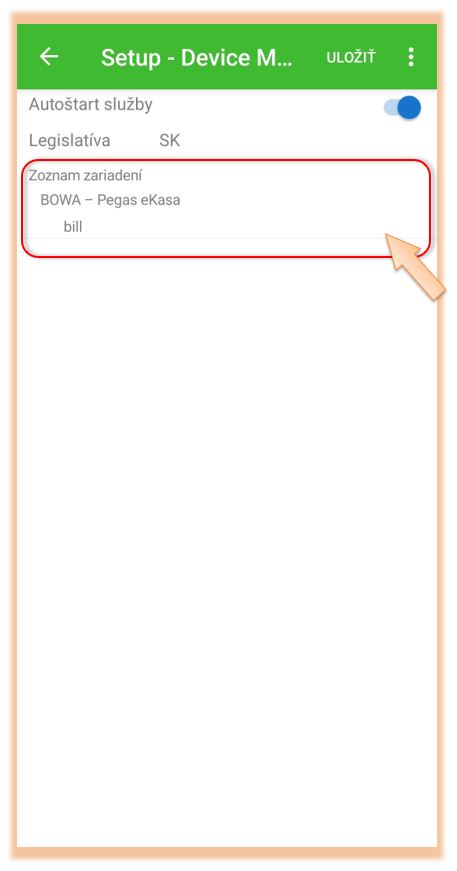- Názov zariadenia - názov, pod ktorým nájdete zariadenie v zozname zariadení v iKelp POS Mobile (predajná aplikácia). Po nakonfigurovaní sa automaticky zariadenie pridá do zoznamu pripojených zariadení, spolu s kódom pre komunikáciu. (V časti Kód spojenia.)