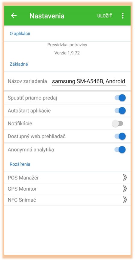 POS Mobile pre Android - popis nastavení