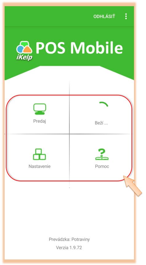 - Predaj - po zaregistrovaní prevádzky a prvom prihlásení, je možné otvoriť okno s predajom aj priamo cez aplikáciu iKelp POS Mobile.