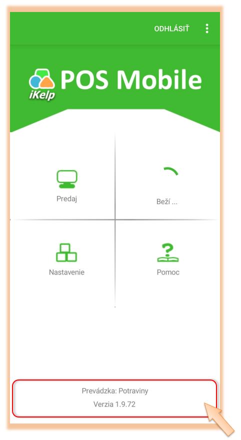 - Verzia - nainštalovaná verzia aplikácie iKelp POS Mobile.