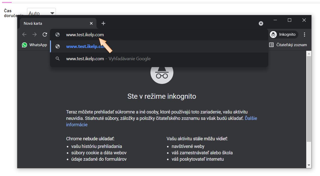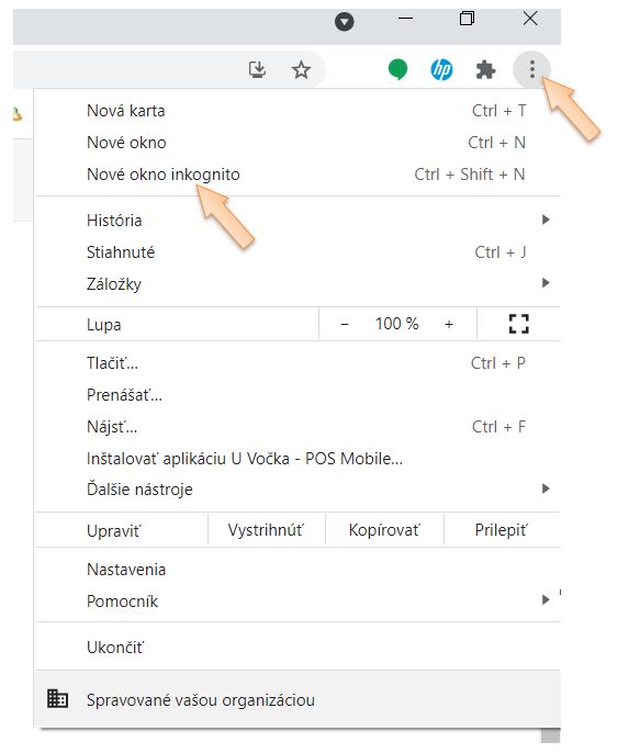 • Otvorte si nové okno v prehliadači v režime inkognito.
