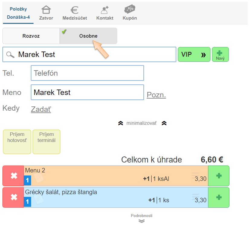 Objednávka z pohľadu zákazníka - objednávka cez Take Away