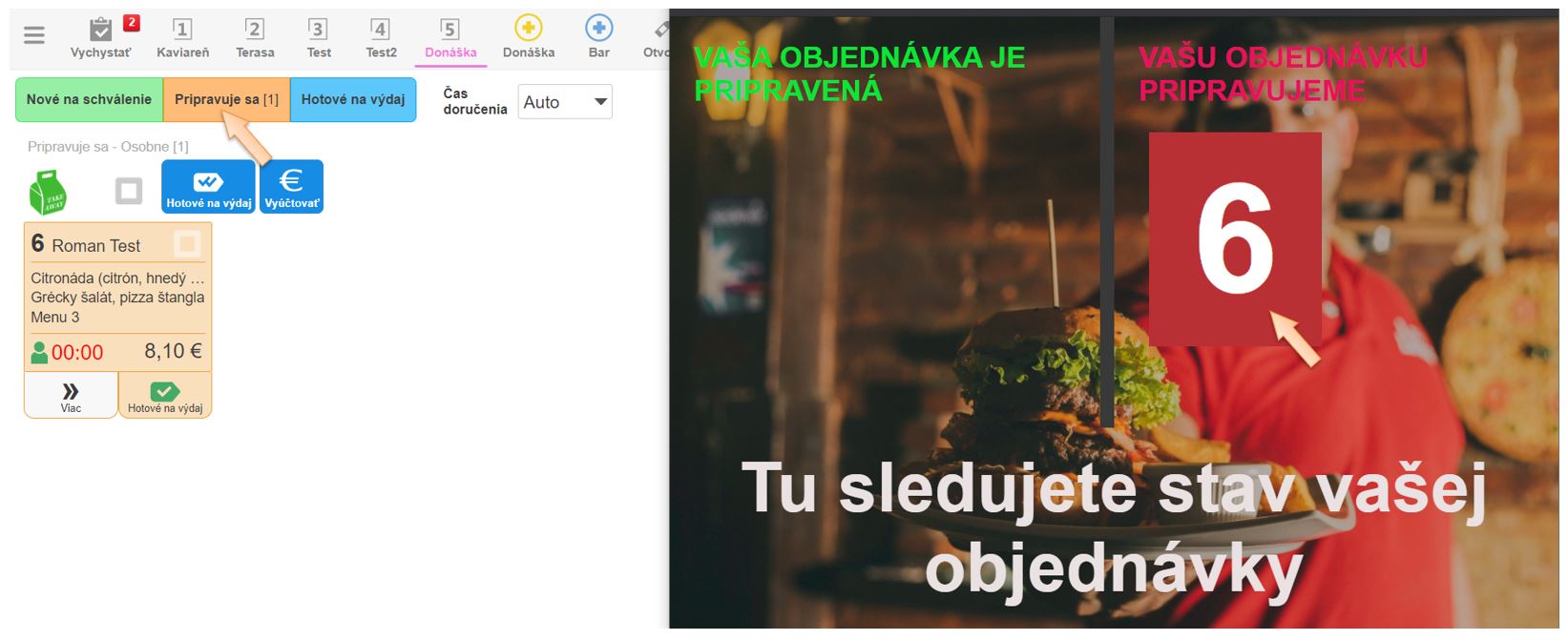 1. Po prijatí, resp. zaevidovaní objednávky a jej odsúhlasení (ak si zákazník objednal online), sa na zákazníckom displeji zobrazí stav Pripravuje sa, s poradovým číslom výdajného lístka objednávky.