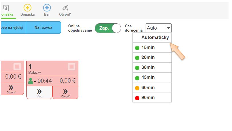 • Povoliť - povolenie dopravy, resp. vyzdvihnutia objednávky na mieste. (Objednávka bude pripravená na konzumáciu na mieste. Ak nie je tento spôsob nastavený, objednávka bude pripravená zabalená na vyzdvihnutie.)