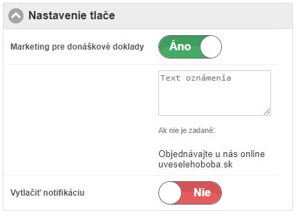 • Vytlačiť notifikáciu - vytlačiť notifikáciu o online objednávke.