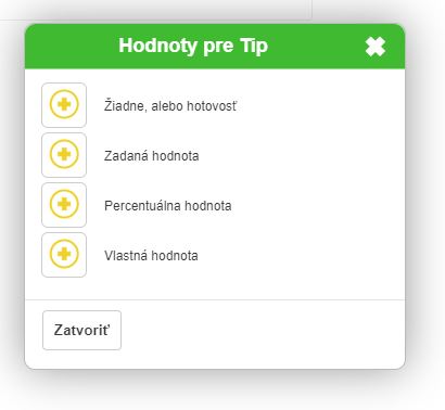 • Zadaná hodnota - zákazníkovi viete ponúknuť preddefinované hodnoty, z ktorých si môže vybrať.