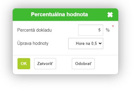• Percentuálna hodnota - zákazníkovi viete ponúknuť aj túto možnosť, kde je ako tip percentuálna hodnota objednávky.