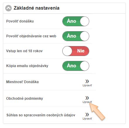 Online objednávanie na donášku - základné nastavenia