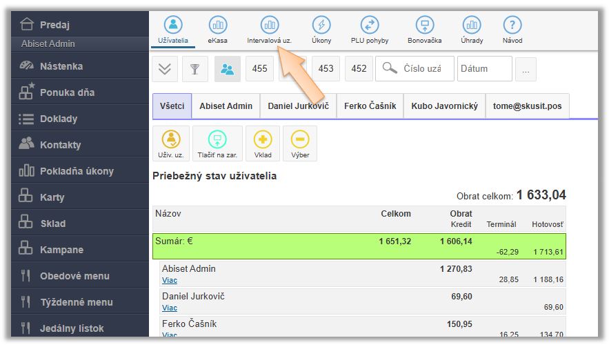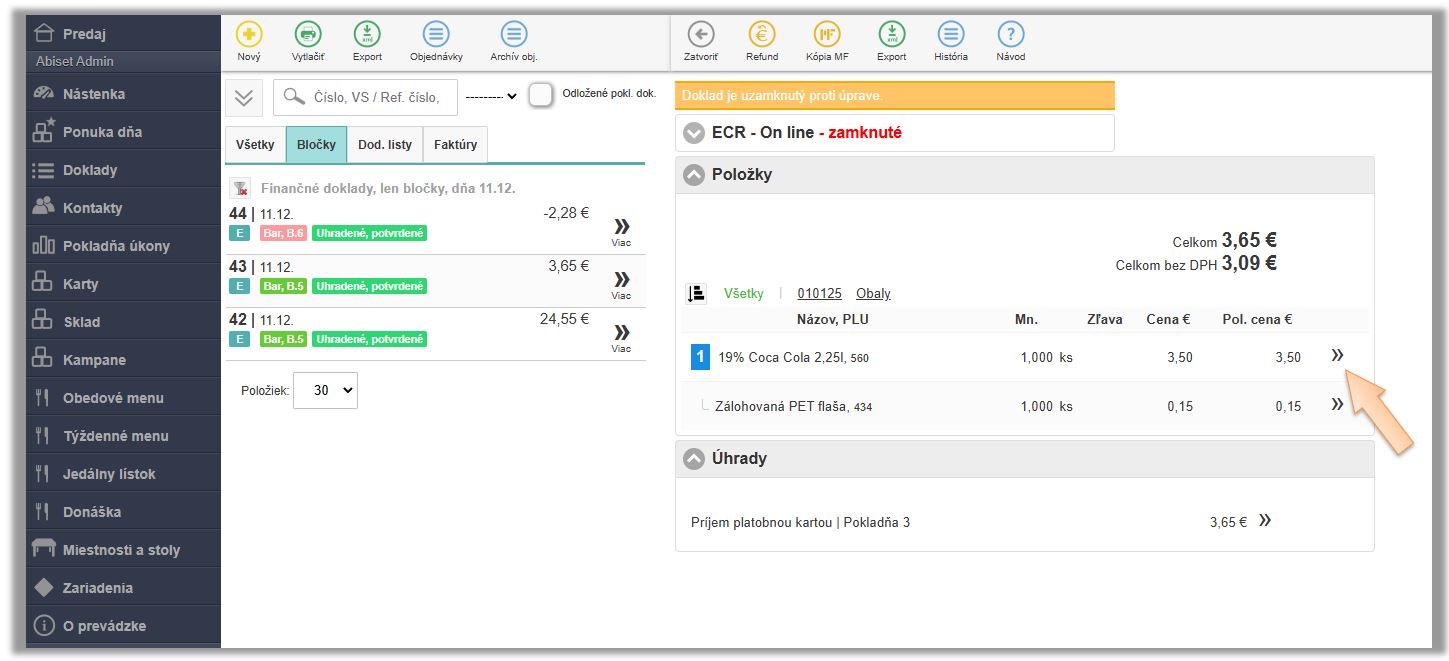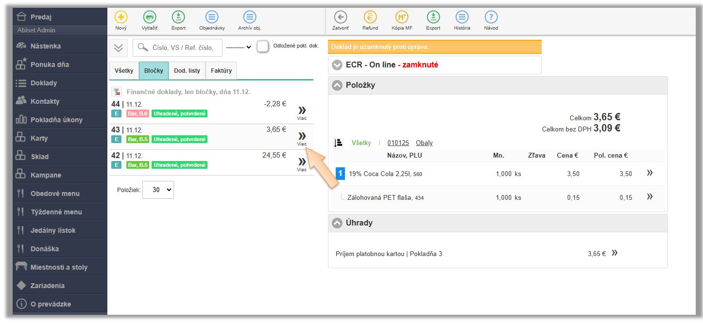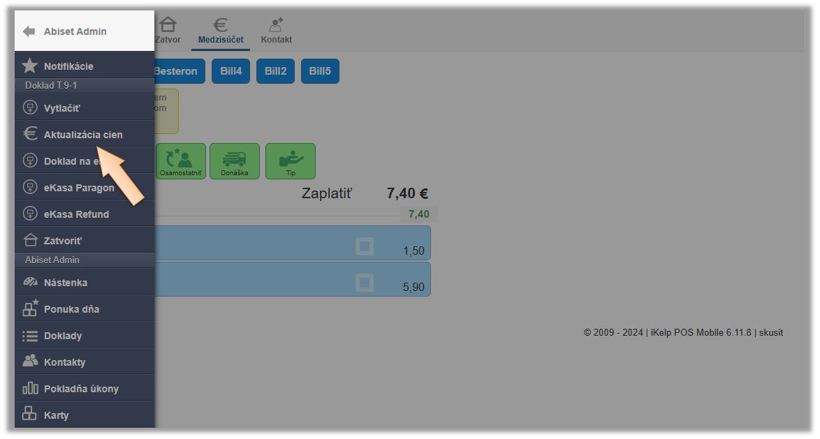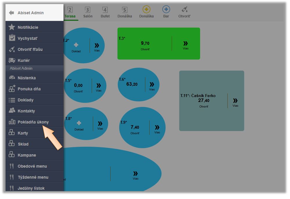 - Kliknite v menu aplikácie na Pokladňa úkony.
