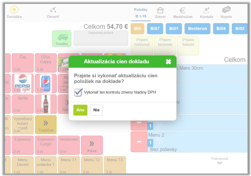 - Prajete si vykonať aktualizáciu cien položiek na doklade? - po kliknutí na Áno sa vykoná prepočet DPH na položkách.