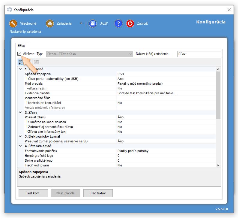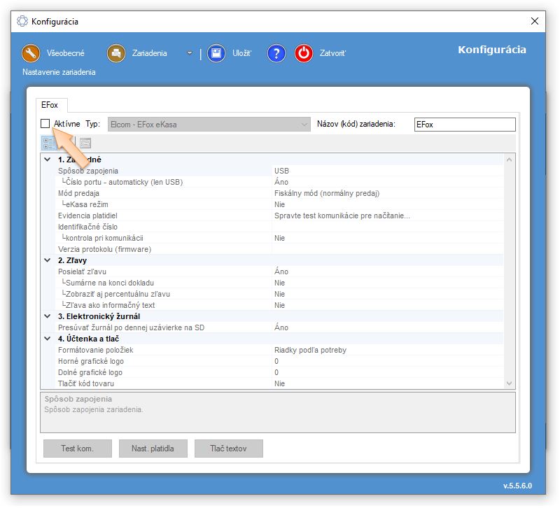- Po aktualizácii aplikácie sa zmení pôvodný typ zariadenia na zariadenie v režime eKasa.