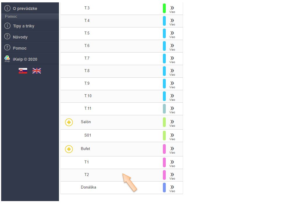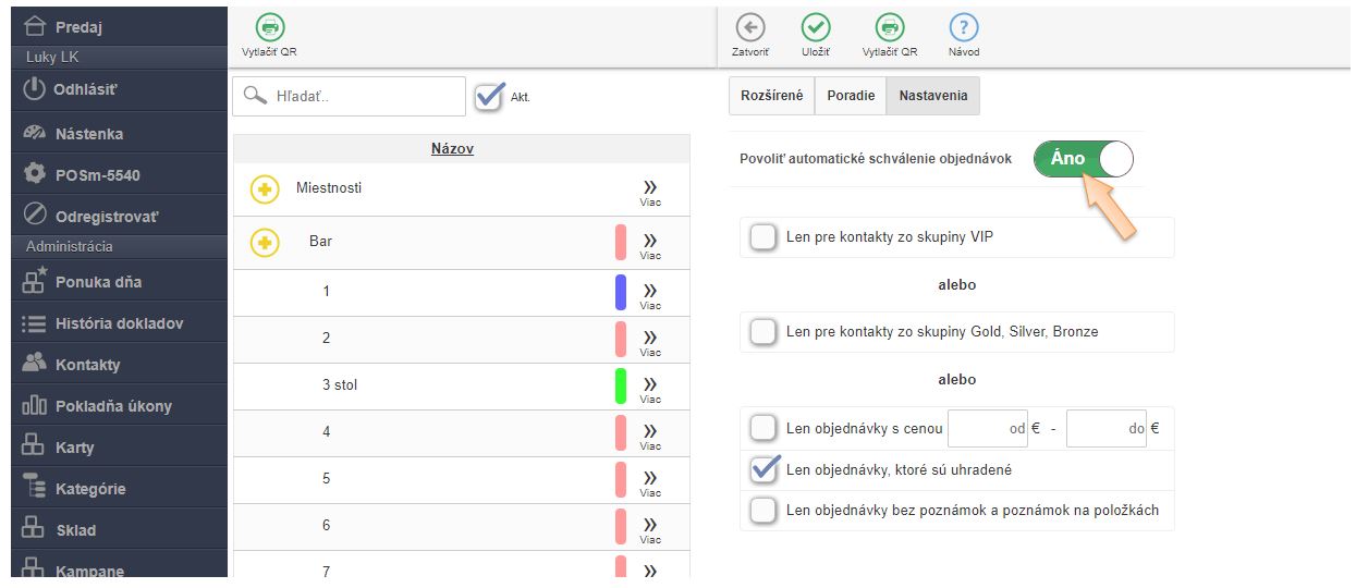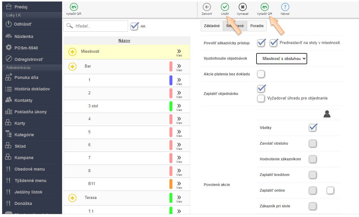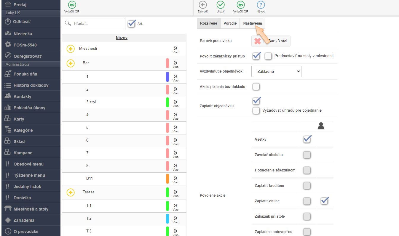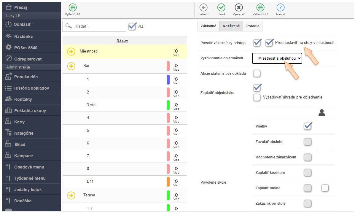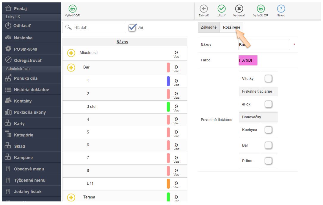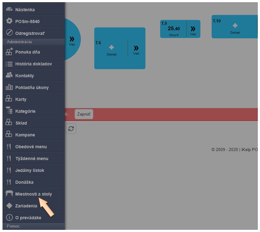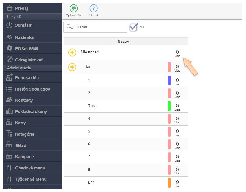 - V menu aplikácie v časti Miestnosti a stoly: