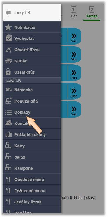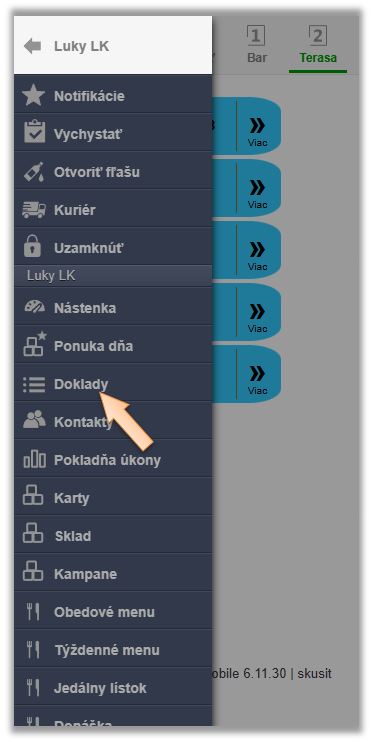 - Kliknite na ikonu Menu a vyberte Doklady.