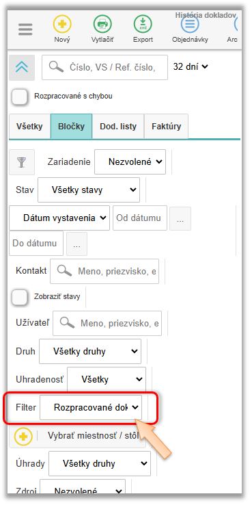 - V časti Filter vyberte možnosť - Rozpracované doklady.