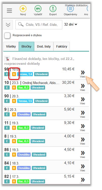 - Kliknite pri doklade na ikonu Viac a vyberte požadovaný úkon.