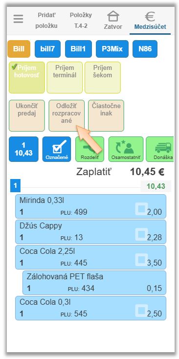 - Kliknite na tlačidlo Odložiť rozpracované (doklad už mohol takto vzniknúť vďaka poruche, vtedy tento bod preskočte).