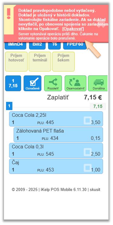 - Ukončenie dokladu skončilo s chybou a doklad sa nevytlačil.