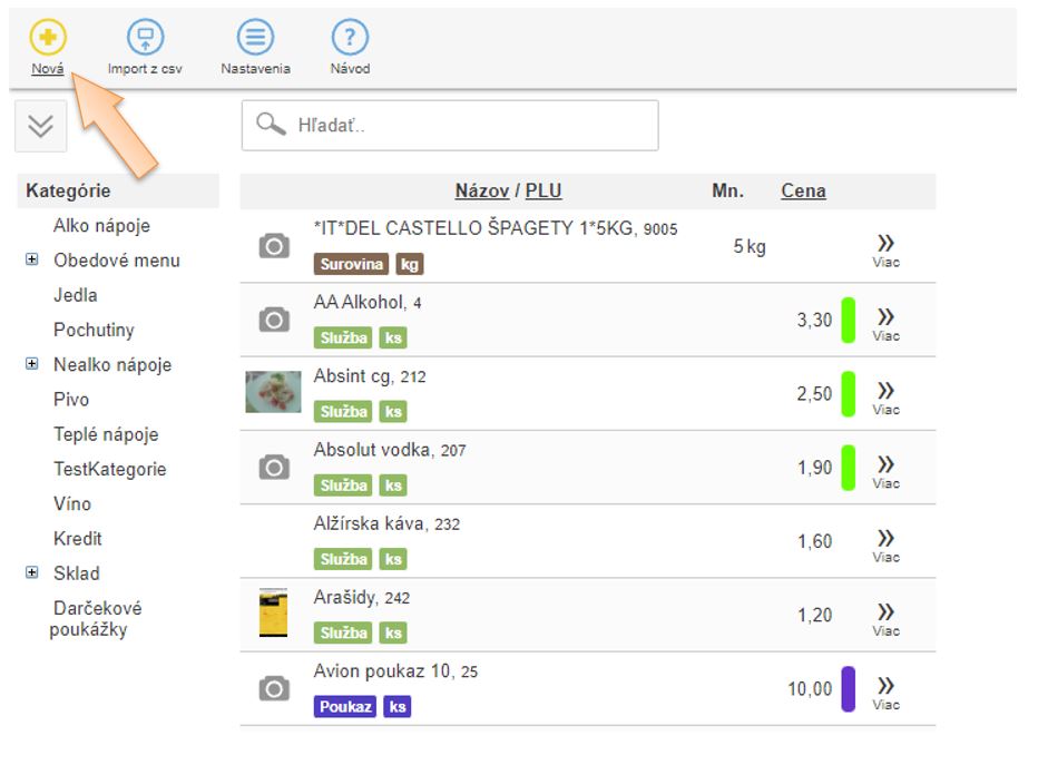 1. Kliknite na možnosť Sklad v menu aplikácie.