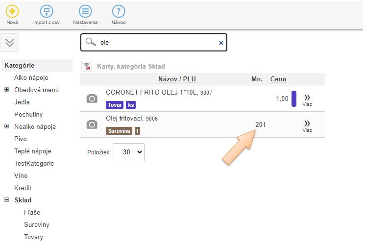 Na tento účel je potrebné mať vytvorené dve karty. Jedna - karta typu tovar alebo fľaša bude slúžiť na naskladnenie tovaru priamo od dodávateľa. Táto položka bude evidovaná v kusoch. Druhá karta, evidovaná ako surovina, na ktorú sa bude preskladňovať už samotný objem dodaného tovaru, evidovaná napr. v litroch. Tento spôsob je možné použiť pri rôznych tovaroch, ktoré sa používajú na výrobu do ktorej vstupujú v iných merných jednotkách, ako sú účtované od dodávateľov. (Napr. 1ks - 15kg zemiakov, 1ks - 10kg múky (balenie) a pod.)