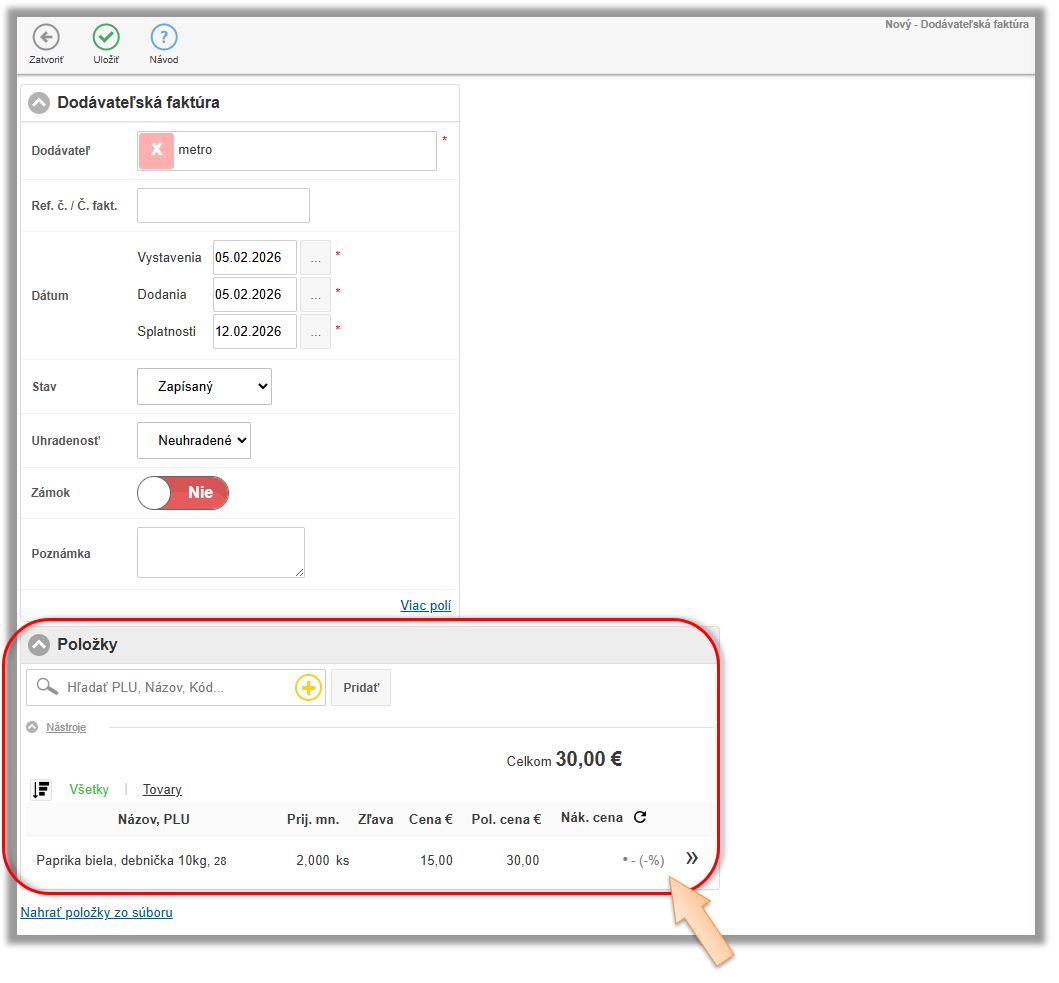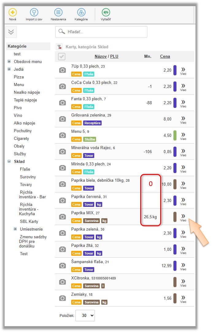 Tento scenár evidencie znovu opíšeme na príklade papriky. Dodávateľ na doklade účtuje papriku ako 1ks - Paprika biela debnička 10kg, ale aby systém vedel správne odpisovať surovinu definovanú v receptúrach, potrebujete to prijať rovno ako paprika biela 10kg. V tomto prípade sa tovar naskladňuje a eviduje na sklade v inej mernej jednotke a v inom počte ako je na doklade od dodávateľa.