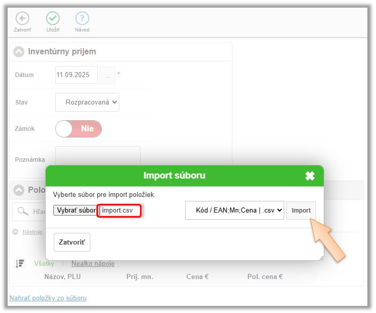 Skladové zásoby je možné naimportovať aj jednoduchým csv súborom. Stačí, ak bude obsahovať nižšie popísané hodnoty.