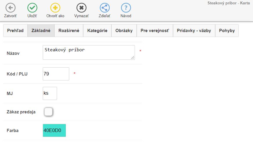 Farba - farba, pod akou sa bude ikona položky zobrazovať v predaji.