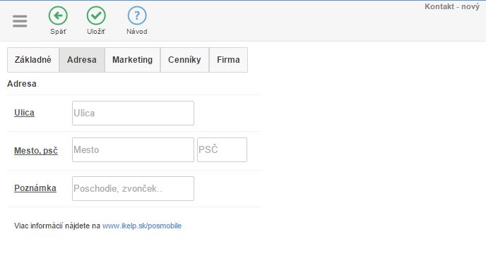 Poznámka - poznámka ku kontaktu. (Pridaná poznámka sa následne zobrazí v predaji, pri výbere daného kontaktu.)