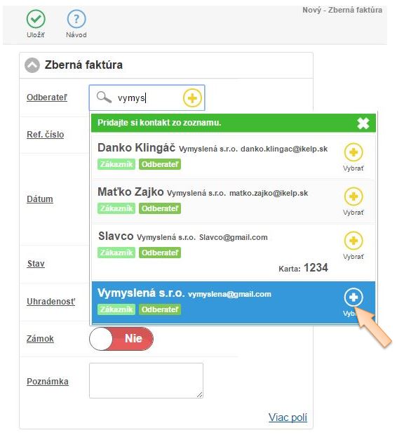- Pridajte kontakt na zákazníka a môžete ďalej účtovať jednotlivé položky.