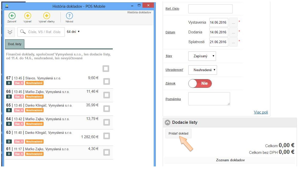 - V časti Dodacie listy kliknite na tlačidlo Pridať doklad.