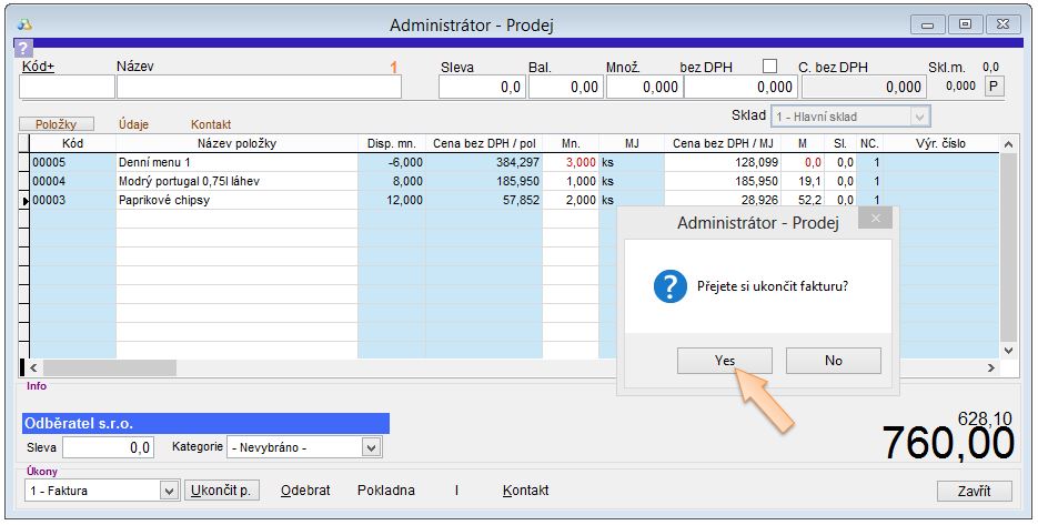 Pro ukončení prodeje dodacím listem nebo fakturou postupujte následně: