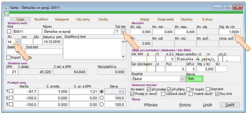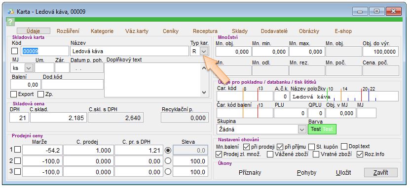 - Název - název skladové karty (je to ten stejný název, jako název v záložce Údaje).