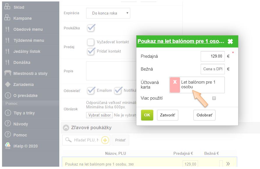 - V predaji vyberte kartu - poukaz , ktorý sí zákazník kupuje.