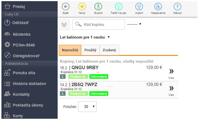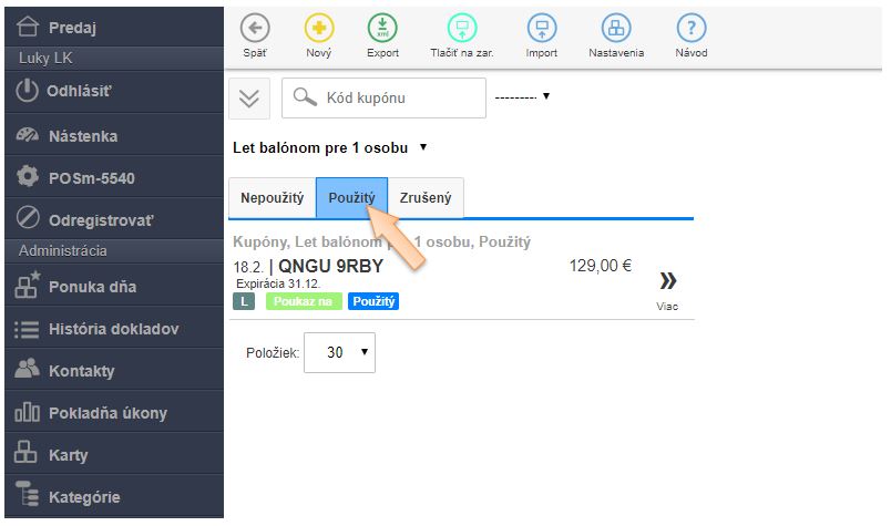 - Po predaji poukazu sa automaticky v danej kampani vygeneruje poukaz s kódom.