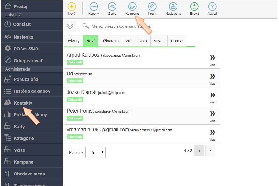 - Zoznam vygenerovaných, a uplatnených kupónov je možné sledovať v menu Kontakty - Kampane.