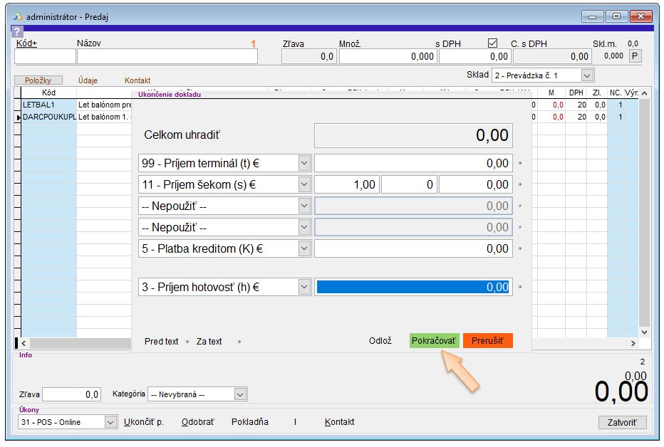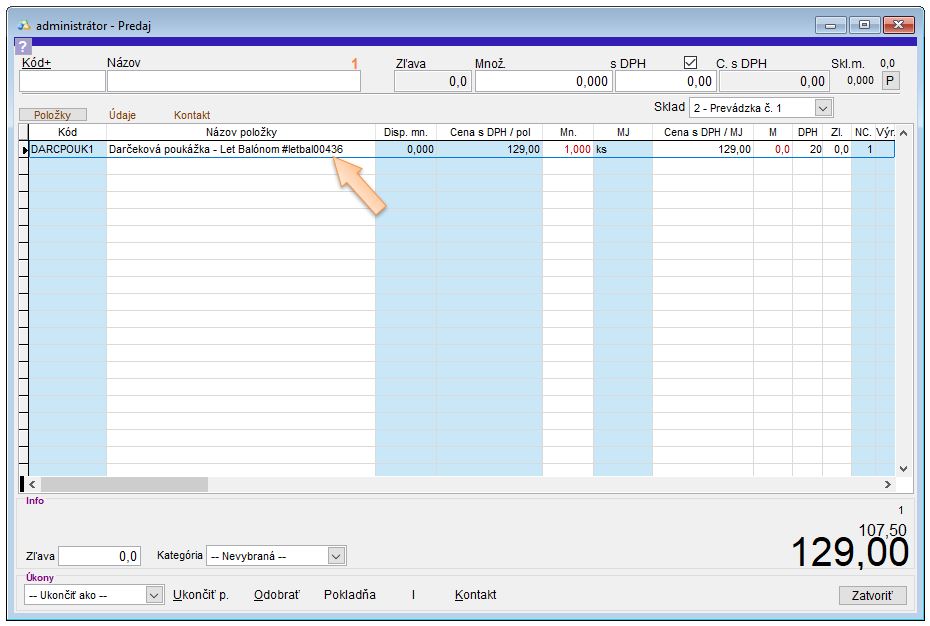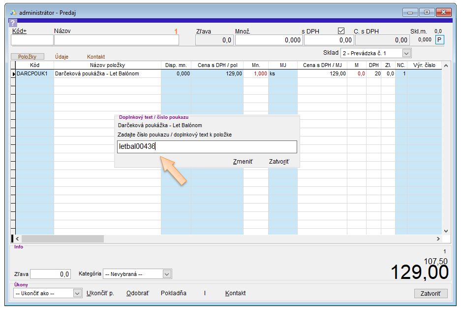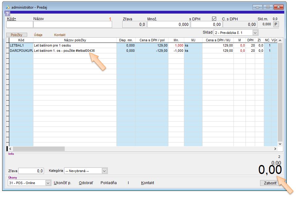 - Pridajte do dokladu položku - uplatnenie poukazu.