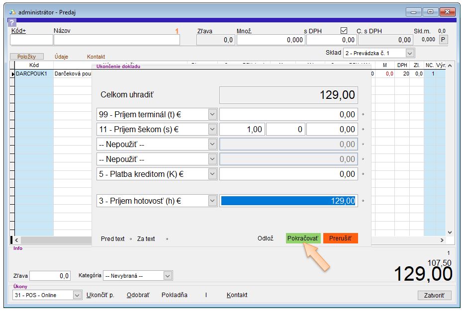 Predaj poukazu a jeho následné uplatnenie v iKelp Predajca - dotykový predaj