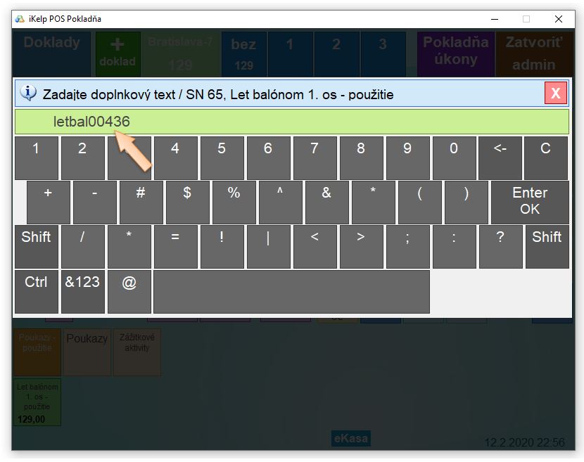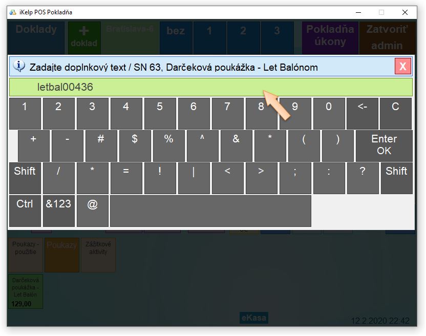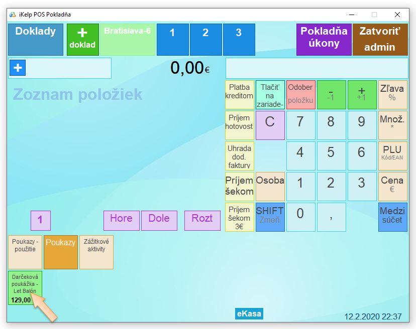 - V režime dotykového predaja vyberte kartu - poukaz zakúpený zákazníkom.