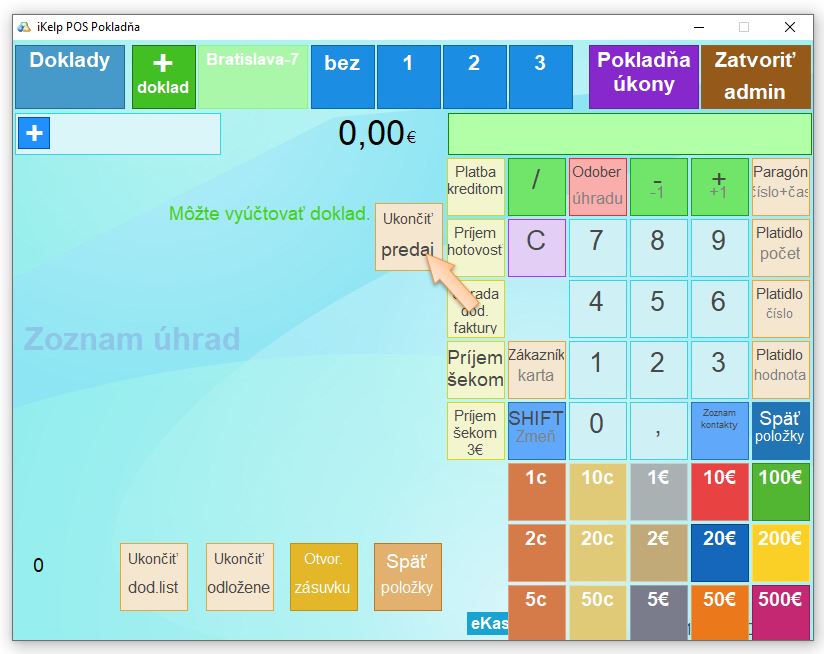 - V režime dotykového predaja naúčtujte dodaný tovar alebo službu.