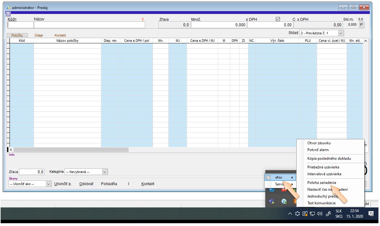 Niektoré zariadenia ako napr. EFox musí byť na portáli FS registrované ako prenosná pokladnica a len v tom prípade je možné posielať tieto údaje. V prípade, že zariadenie je na portáli FS nahlásené na konkrétnu prevádzku, nie je potrebné tieto údaje vyplňovať.