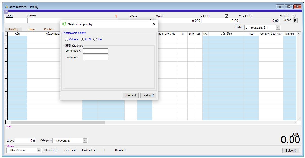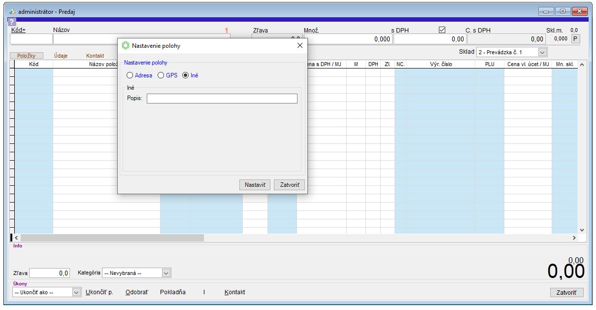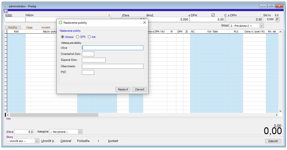 Nastavenie údajov o mieste predaja