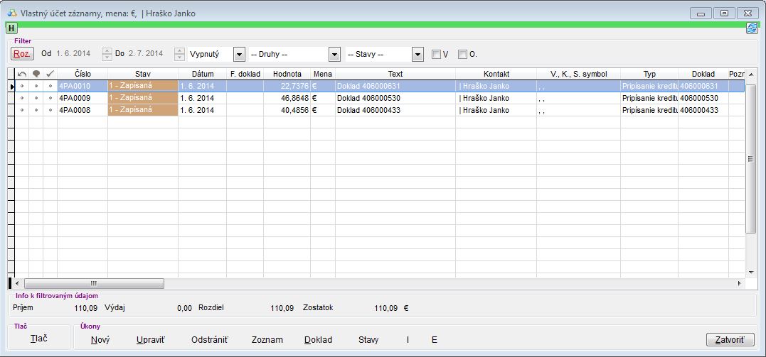 - V záložke Vl. účet skontrolujte, či má zákazník pridelený účet: Vlastný účet.