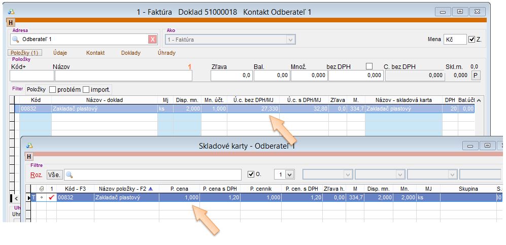 - Pridajte položky zo zoznamu skladových kariet, ktoré sú predmetom fakturácie.
