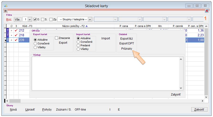 Import skladových kariet a Off-line predaj