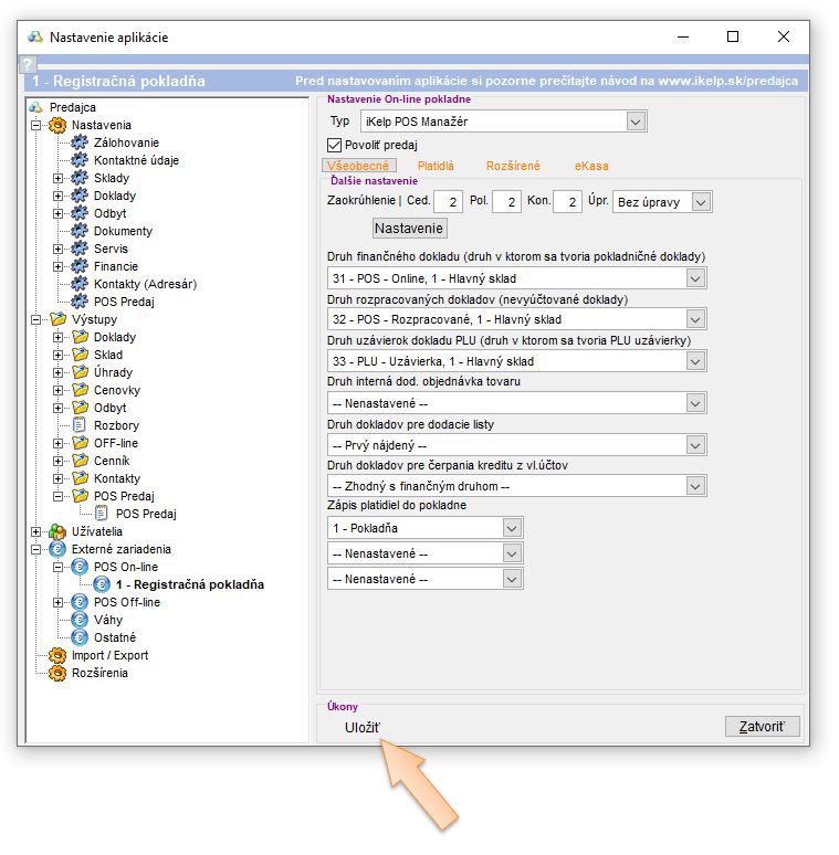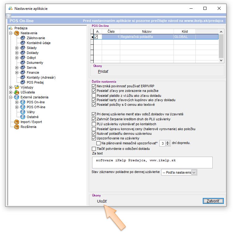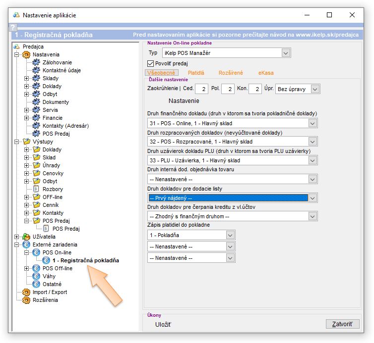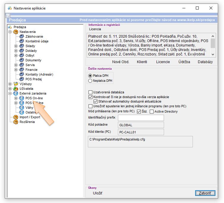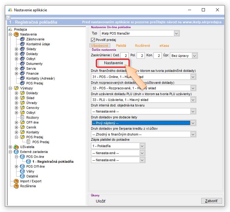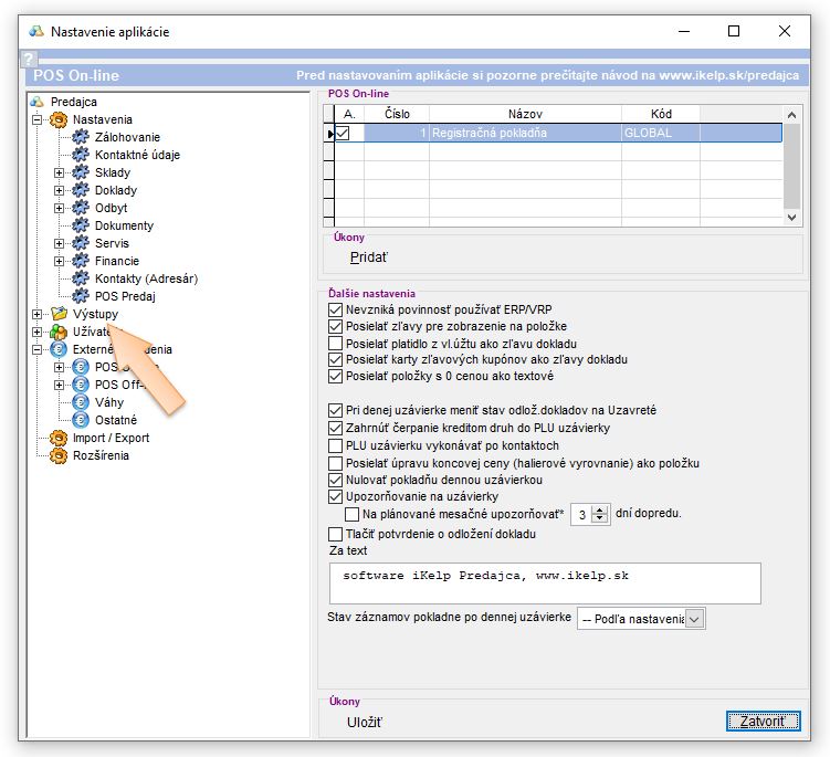 - Rozkliknite ponuku POS Online kliknutím na ikonu +.