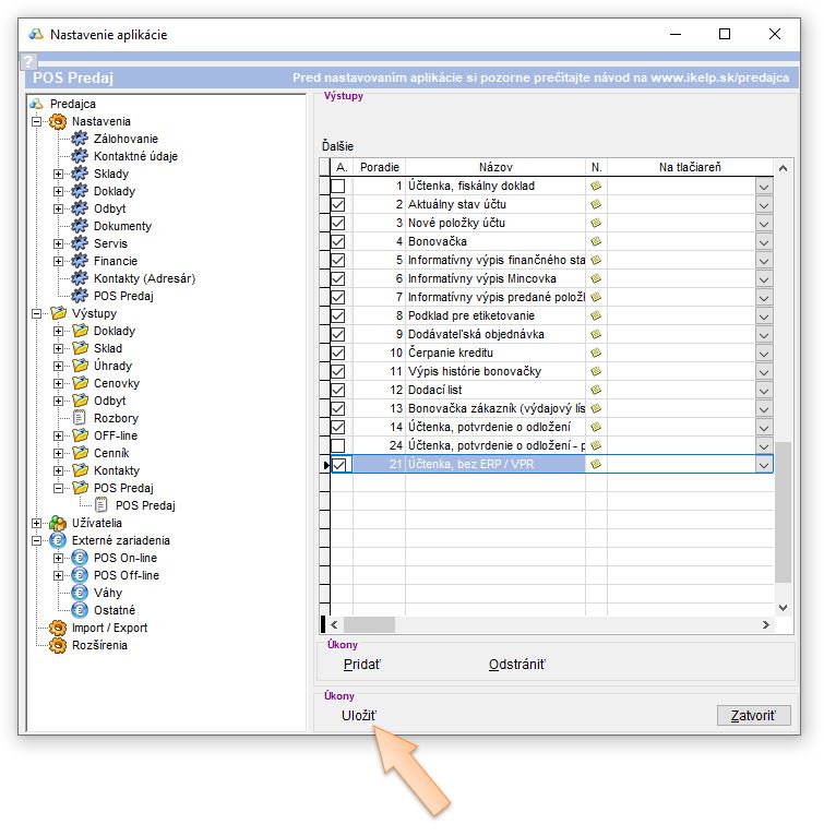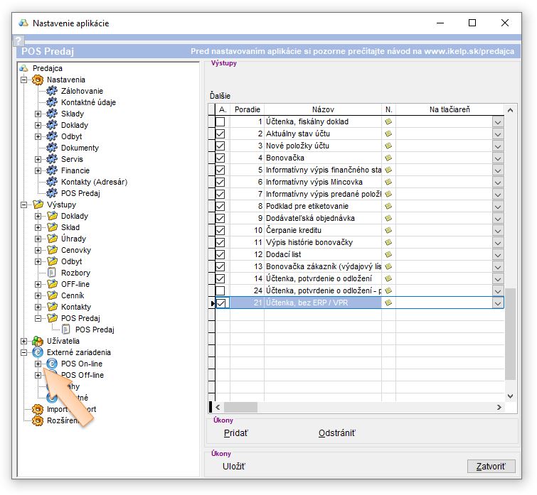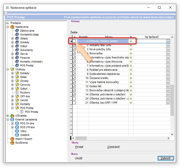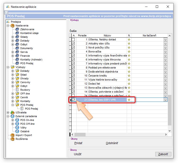 - Deaktivujte výstup Účtenka, fiskálny doklad.