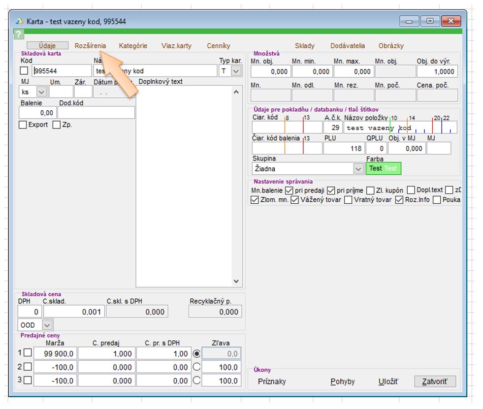 Nastavenie presnosti na skladovej karte