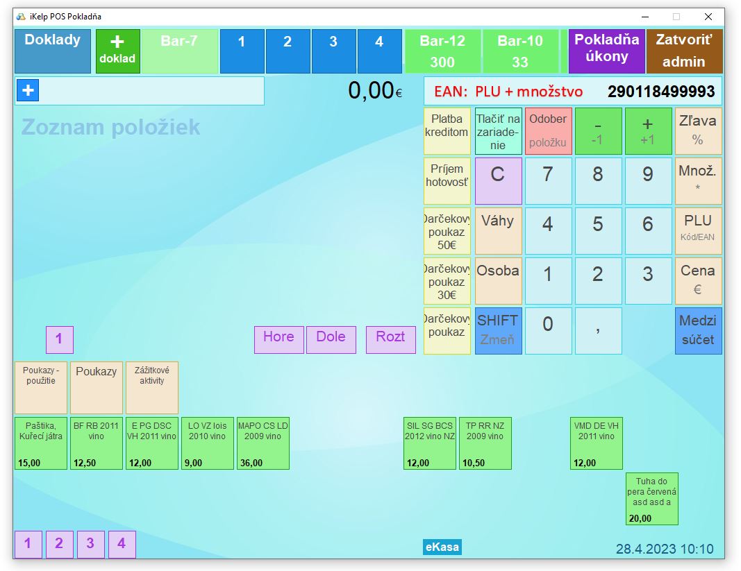 - Prefix 20 - 24 (PLU + cena) v tomto prípade sa pred oskenovaním EAN kódu zadá množstvo a z kódu sa použije PLU a cena za položku.